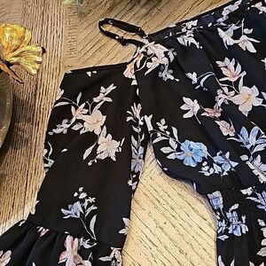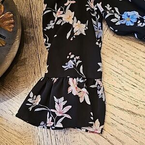 Floral open shoulder dress size S, bell sleeves, check measurements to make sure, waist is super stretchy so it can definitely fit S to M, adjustable straps, new condition.