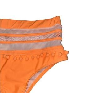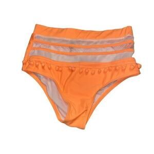 Floralkini Orange Pom-Pom High Waisted Bikini Swim Bottoms Women's Size Small