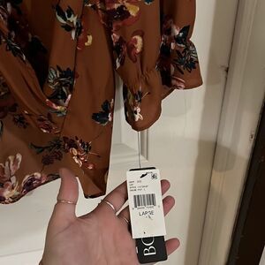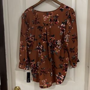 Burnt orange floral flowy blouse NWT Check out my closet to bundle for deals! Offers welcome Any question? Feel free to comment