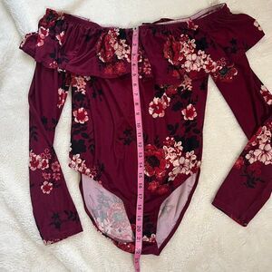 Floral off shoulder bodysuit. Juniors 15-17 possible large extra large women’s. ***Please see measurements.