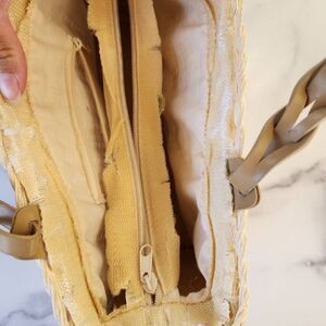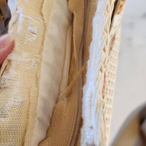 The pleather x shaped material has some areas where it's peeling. The outer edge of the zipper inside has detached from the material . I'm sure you could either sew it back with some extra material or just remove it completely.