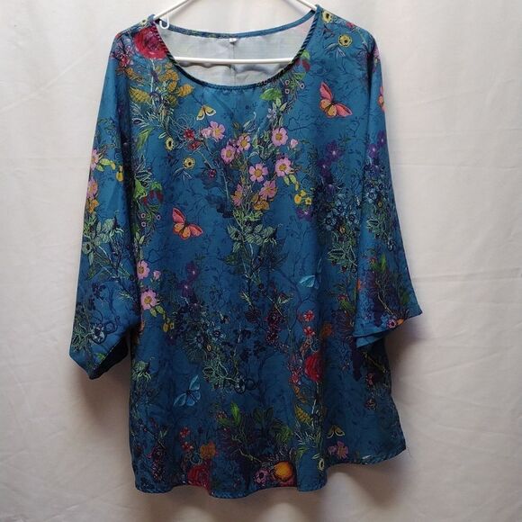 unbranded floral top, oversized. feels like cotton polyester blend pit to pit 26" length 30" 5B