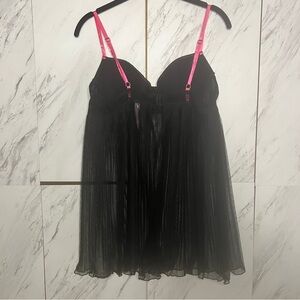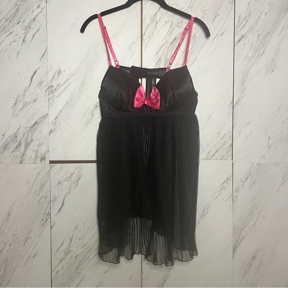 Flora's Follies Black Pink Sheer Pleated Teddy Lingerie SZ L
