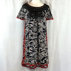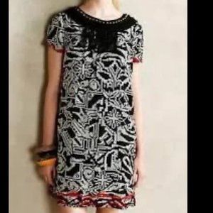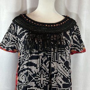 Floreat Anthropologie 'Abelia' Black Embroidered Fringe Dress Sz S
