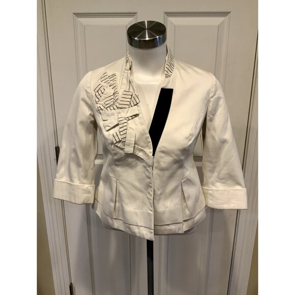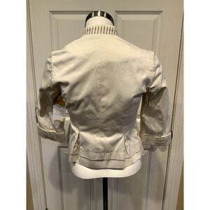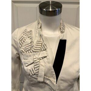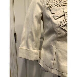 Floreat Anthropologie Cream W/ Blue Striped Trim Jacket, Size 0 (US)