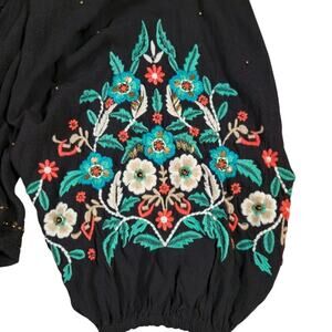 Floreat Anthropologie Embroidered Peasant Top Medium Black Bohemian Whimsigoth