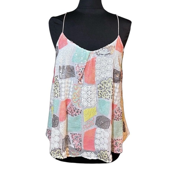 Floreat Anthropologie Louisa Tank Blouse Womens Size XS Boho Sequin Flowy Hippie