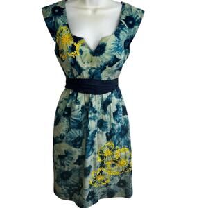 Floreat Blue and Yellow Sweetheart Cotton Floral Sundress Size 2