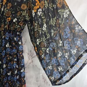 Floreat Dress Womens Small Black Floral Midi Kimono Cover Up Topper Long