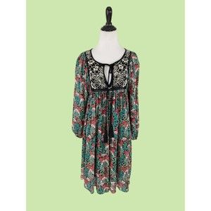 Floreat Dress XS Anthropologie Ottava Peasant Embroidered Swing Babydoll