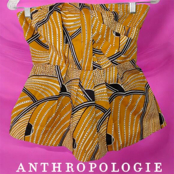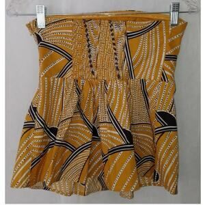Floreat Sz 8 Gold Yellow Black Dotted Sleeveless Strapless Anthropologie Boho