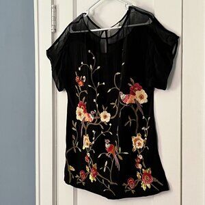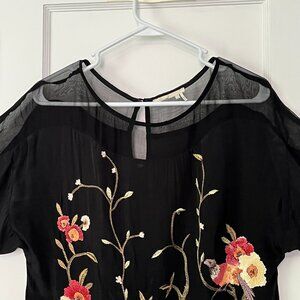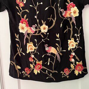 Floreat anthropologie blouse size small sequin embellished sheer floral bird