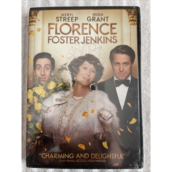 The product is a DVD of the movie "Florence Foster Jenkins" starring Hugh Grant and Meryl Streep. It is a comedy film directed by Stephen Frears and produced by Paramount Pictures. The DVD is in English and has a Region Code of 1, suitable for players in the US and Canada. The case type is a tall/DVD case. This new and sealed DVD would be a great addition to any movie collection for fans of Grant and Streep.