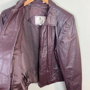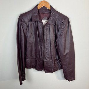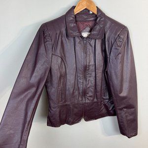 Florence Tanners Leather Jacket 11/12 Women Maroon Biker Zip Up Optional Lining