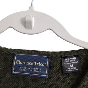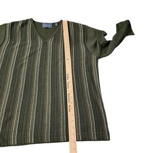 Florence Tricot Sweater Mens Medium Green Striped V-Neck Wool Knit Pullover