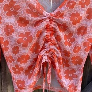 Florence by Mills exclusive ABOUT YOU ‘Foggy’ Flare Sleeve Y2K Top in Orange