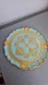 Elegant decorative tray with intricate gold detailing on a blue background. Perfect for adding a touch of vintage charm to any space.