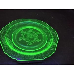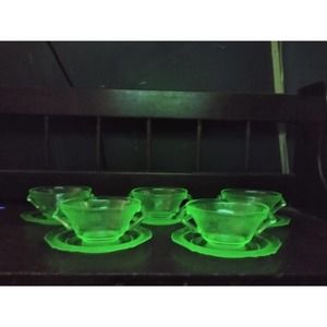 Florentine uranium glass soup bowls and saucers (set of 5)