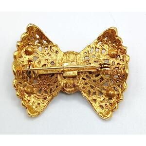 Florenza Vintage Pearl Jet Black Bow Brooch