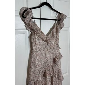 Floret Studios Cold Shoulder Asymmetric Ruffle Dress Cream Floral XS