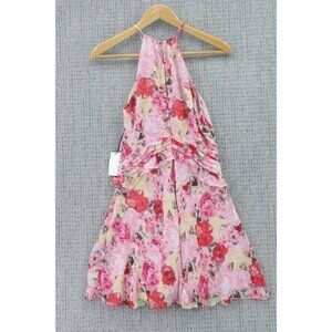 Floret Studios Flare Dress Womens Large Pink Floral Pattern Sleeveless Lined NWT