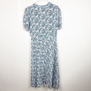 Floret Studios Multi Floral Midi 90s Teal Dress Buttons Large