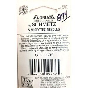 Floriani Chrome By Schmetz 5 Microtex Needles Size 80/12 Sewing & Quilting Suppl