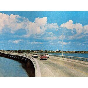Florida FL Daytona Beach Halifax River Bridge Postcard Vintage 1950s Cars Unpost