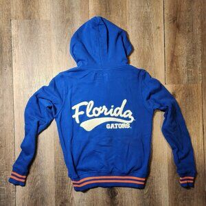 This is an E5 College Classics officially licensed University of Florida Gators hooded jacket with snap-button closures. It's the perfect way for a female fan to show team spirit on game day!🏈✨