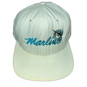 Florida Marlins The Game Script Logo Vintage 90s Adjustable Snapback Cap Hat