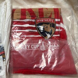 Set of Florida Panthers T-shirts in red and white. Features team logo and Stanley Cup design.