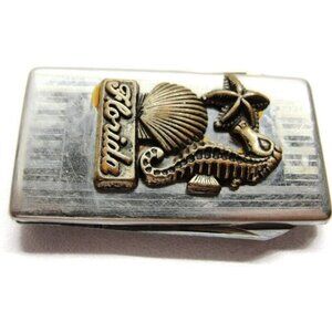 Florida Seahorse Starfish Sea Shell Knife File Money Clip Stainless Steel Wallet