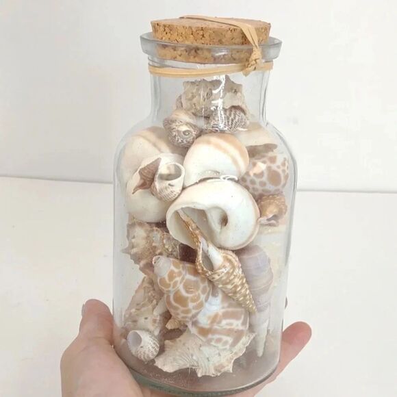 Florida Seashells in Glass Jar with cork Stopper NWOT Handmade Custom Gift
