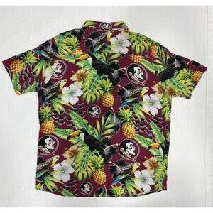 The product is an XL men's shirt in maroon, featuring the logo of the Florida State Seminoles, a college football team. This shirt is designed for fans who want to show their support for the team in a stylish and comfortable way. Perfect for wearing to games or casual outings, this Hawaiian-style shirt is a great addition to any fan's collection.