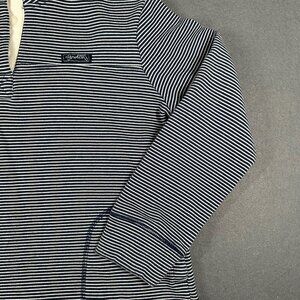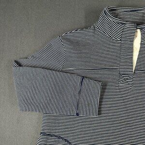 Florida State of Mine Women's Small Navy Blue White Striped Pullover 1/4 Button Top. 60% Organic Cotton, 40% Polyester.