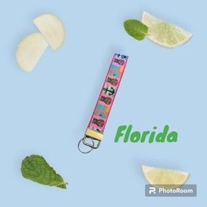 Florida Theme Key Fob Wristlet Keychain Cane strap handmade
