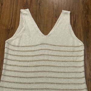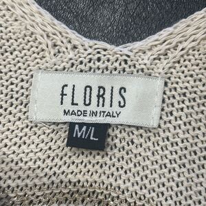 Floris Italy Dress Womens Medium Large Cream Gold Metallic Knit Cover Up Boho