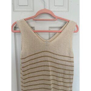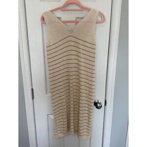 Style Tags: Knit, V-neck, Sleeveless, Casual, Coastal, Stripes, Metallic, Mini Dress, Italy, Spring, Summer, Neutral, Crochet