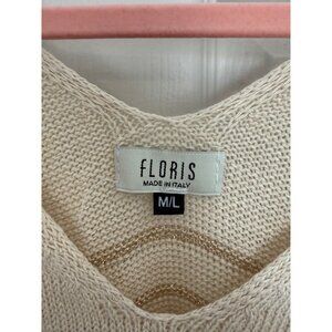 Floris Made in Italy V-Neck Crochet Knit Sleeveless Cream Mini Dress Size M/L