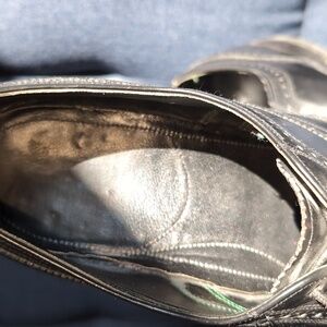 Sleek black leather with intricate brogue detailing. Ideal for formal events. Comfortable and stylish.