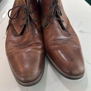 Florsheim Boots. Men’s size 11.5. Brown leather shoes. Good used condition! There are a few water spots and they could use a good conditioning!