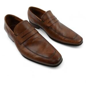 Florsheim Dress Shoes Mens 12D Cognac Leather Rucci Moc Toe Penny Loafers