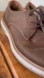 Brown Leather Shoes Right shoe has an added bottom to make it 1/4 inch taller for people with leg discrepancy. Inside of left heel shows wear
