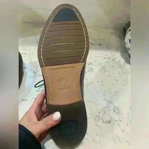 These dress shoes are brand new. Size 10. Small scuff on top of one shoe as shown in picture. These have the flex sole and comfort padding on the tongue. Missing the box. Will ship quickly and wrapped for protection. Smoke free home.