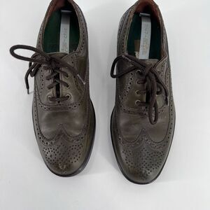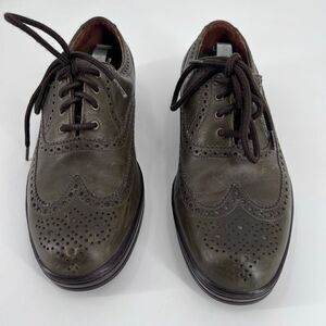 Stylish olive green Oxfords by Florsheim. Features classic brogue detailing. Perfect for formal occasions.