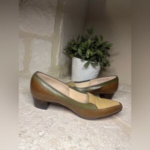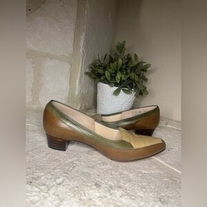 Florsheim Ramblers olive green/tan/brown Block Heels Leather Pumps Size 6