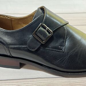 Florsheim Ravello Mens Sz 9.5M Black Polished Leather Single Monk Strap Dress Shoe Plain Toe Loafer