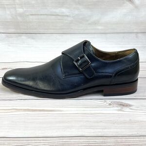 Florsheim Ravello Mens 9.5M Black Leather Monk Strap Dress Shoe Plain Toe Loafer