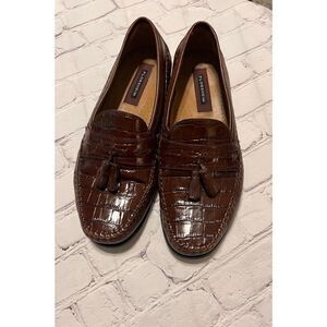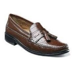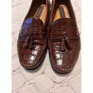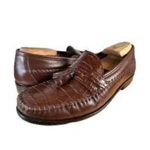 Florsheim Size 10 EEE Pisa Moc Toe Tassel Loafer Brown Embossed Leather Shoe