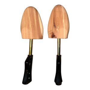 The Florsheim Travel Tree Cedar Shoe Trees are a vintage set specifically designed for men in size Large (10W to 12). Made in the United States with cedar wood, these shoe trees provide a stylish and practical solution for maintaining the shape and longevity of your shoes while traveling. The set includes a convenient box for storage and transportation, making them a great addition to any gentleman's shoe care collection.